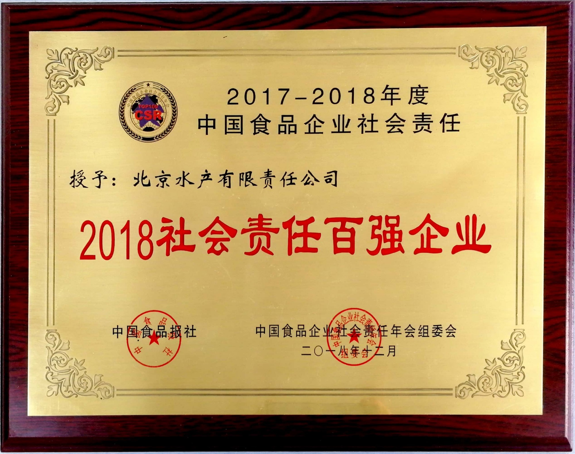 發證機構:   中國食品企業社會責任年會組委會 發證時間 :   2018-12-07