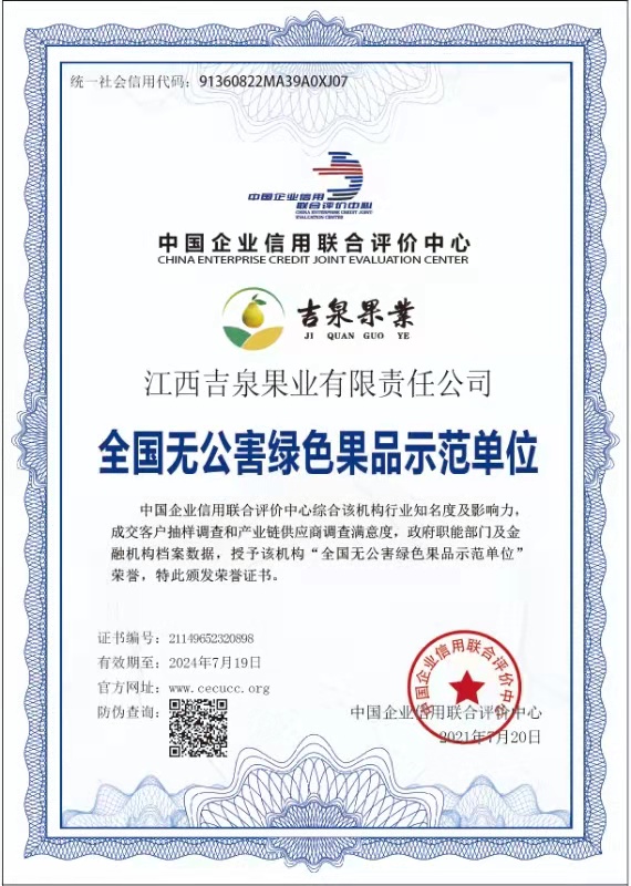 公司被評定全國無公害綠色果品示范單位