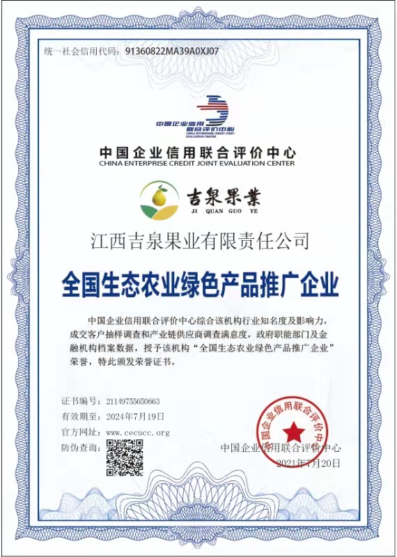 公司被評定全國生態農業綠色產品推廣企業
