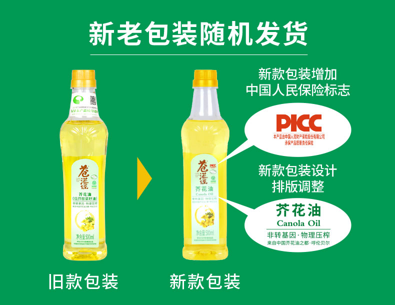 呼倫貝爾農(nóng)墾出品蒼茫謠芥花油非轉(zhuǎn)基因食用油500ml*6